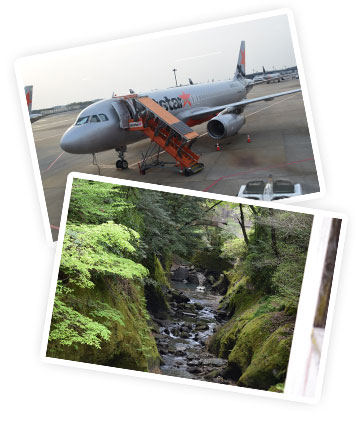 飛行機で九州・熊本空港に到着。空港に降り立った瞬間、「熊本といえば、やっぱりくまモン!」という声も。早くも旅気分が高まります。